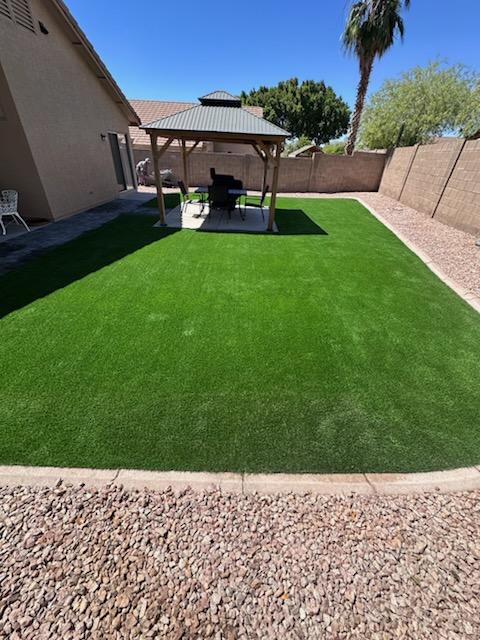 G&C Landscaping LLC recently completed a stunning transformation in Mesa, AZ, turning a simple rock-filled yard into a lush oasis. The project's goal was to revitalize the outdoor space, creating a green haven for relaxation and entertainment. Key features included the installation of vibrant artificial turf, providing a year-round green lawn that requires minimal maintenance. This project faced the challenge of the dry, rocky terrain, which was expertly managed through innovative landscape design and efficient resource use. As a result, the space now boasts a beautifully manicured, sustainable environment that enhances the property's aesthetic appeal. This transformation not only increases the home's value but also provides the family with a tranquil outdoor retreat and a durable play area for pets and children. Discover the difference G&C Landscaping LLC can make in your outdoor space—contact us today for a consultation and turn your landscape dreams into reality.