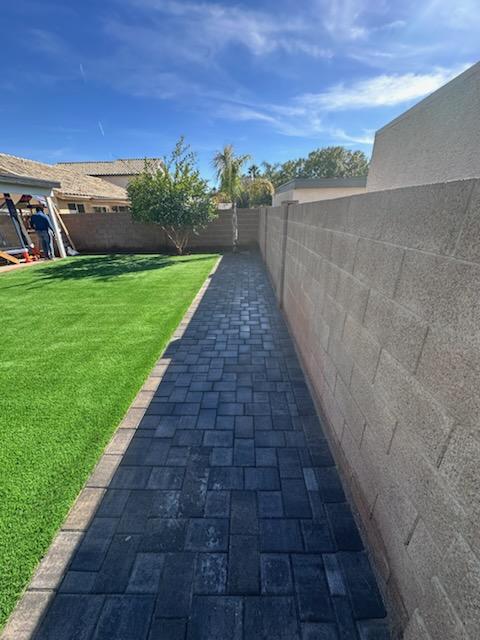 G&C Landscaping LLC took on the ambitious project of transforming a typical arid backyard in Mesa, AZ, into a verdant oasis featuring a lush lawn and an elegant pathway. The primary goal was to create a functional yet stunning outdoor space that harmonizes with the desert environment. Key features of the project include the installation of high-quality artificial turf, ensuring a low-maintenance yet evergreen lawn, and a beautifully crafted paver pathway that adds a touch of sophistication. Despite the challenges of working with the arid soil typical of the region, G&C Landscaping LLC utilized advanced techniques to ensure durability and aesthetic appeal. The project resulted in a dramatic transformation, providing the homeowner with an inviting and picturesque backyard perfect for relaxation and entertaining. Long-term benefits include reduced water usage, minimal maintenance, and an increase in property value. Contact G&C Landscaping LLC today to explore how we can reinvent your outdoor space with our expert landscaping solutions.